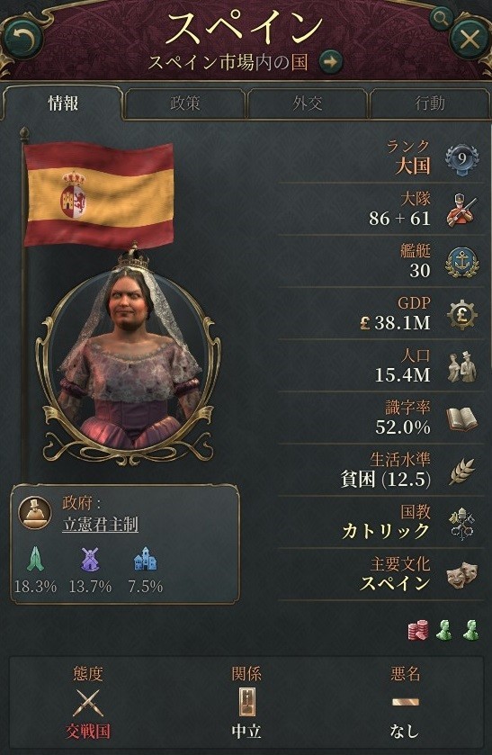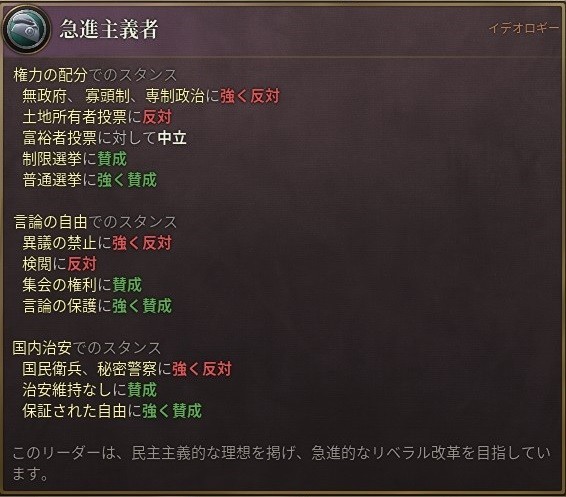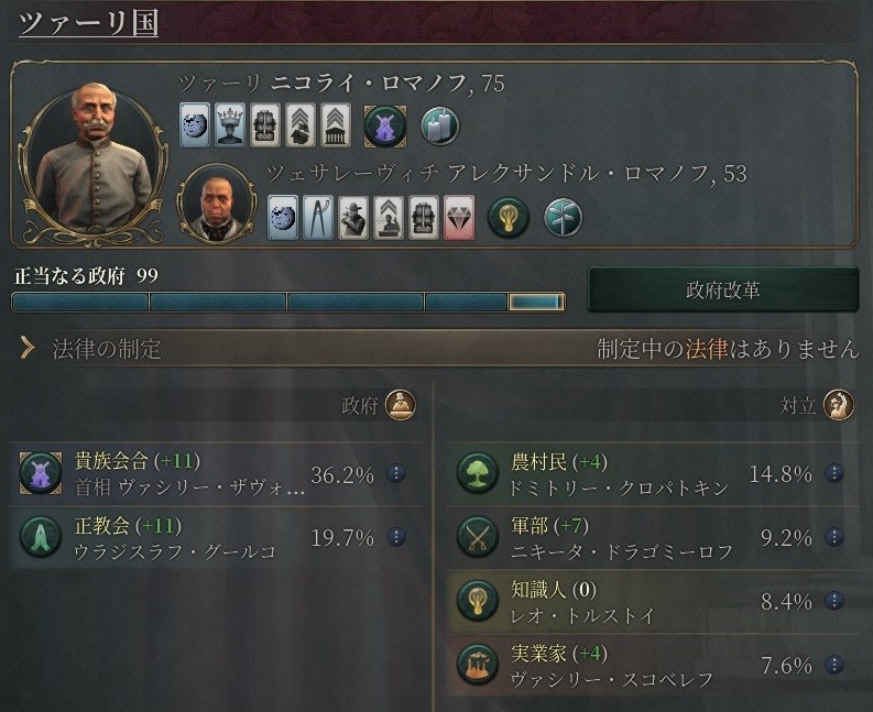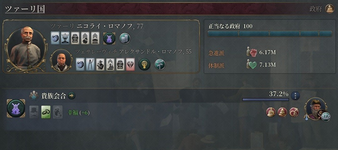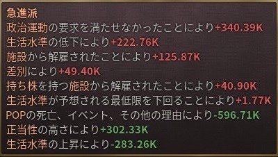 元々人口の多いこの2つのPOPの10%が体制派に鞍替えしたことで、あれだけ危険水準にあった体制派-急進派バランスが一気に逆転することとなった。凄まじい効果だ。