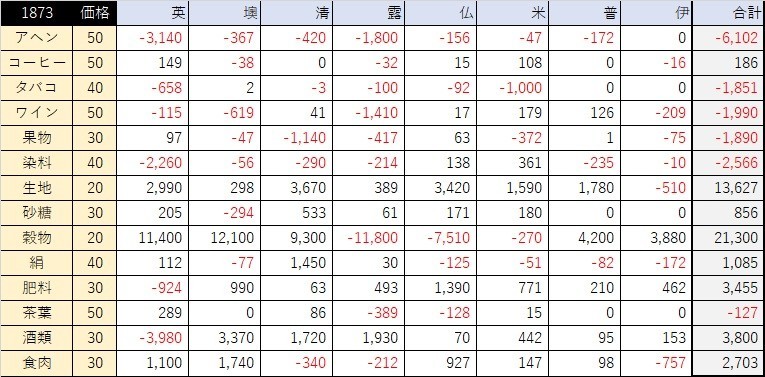 このあたりで、1873年時点での経済状況を確認しておくとしよう。