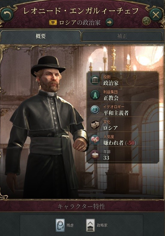 今や政権内に逆らえるものなどいない「皇帝」ヴァシリー・ザヴォイコが強力に推し進める「征清論」は政権の既定路線となり、これに反対した平和主義者のルハンシク府主教レオニード・エンガルィーチェフは、残虐かつ悪辣な趣味をしているという謂れのない評判を添えられながら政権から追放された。