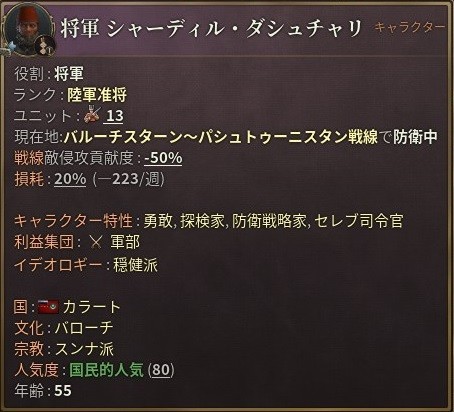 どうやらバローチ人の国民的英雄のようで、「防衛戦略家」の特性も持っており、防備にはもってこいの人材であった。