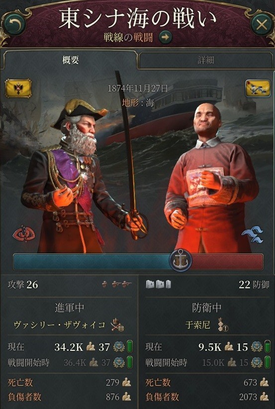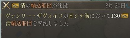 アレクセイ大公も50日の船旅の後、東シナ海にて清海軍と激突し、難なくこれを撃破。