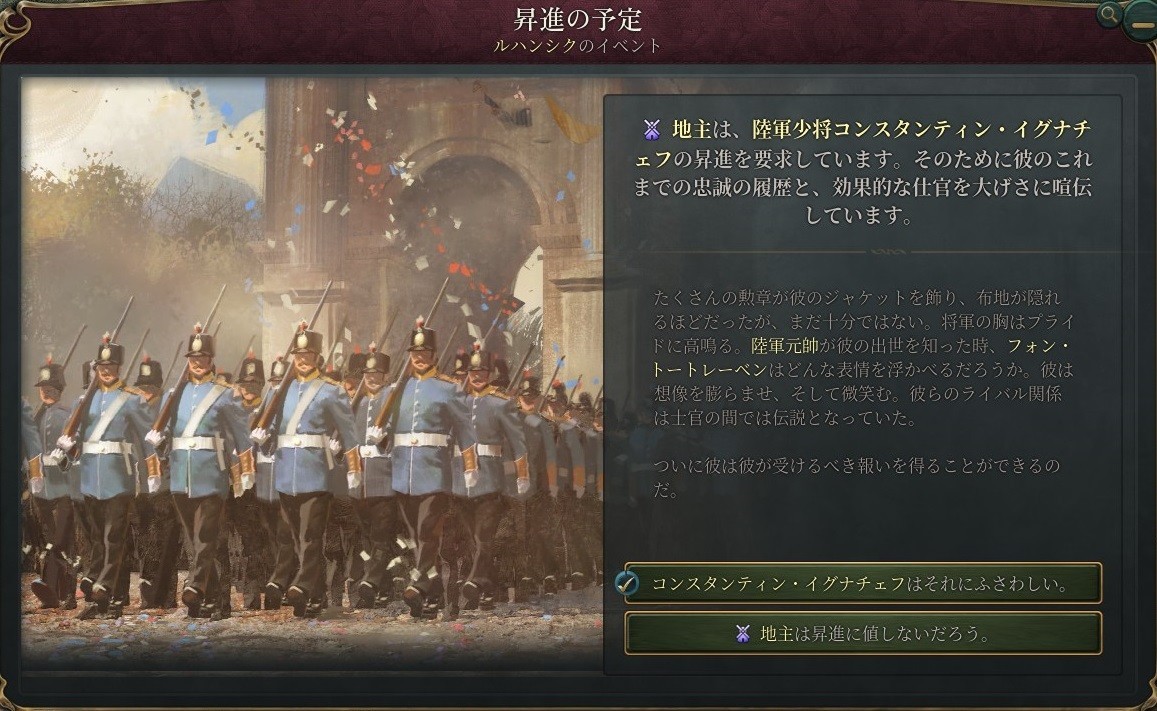 この間にも、「真の皇帝」ザヴォイコの号令の下、ロシア全土の農地が大量に開墾されていく。無限に広がる可能性の大地に、ロシアの富を繁栄させるために。