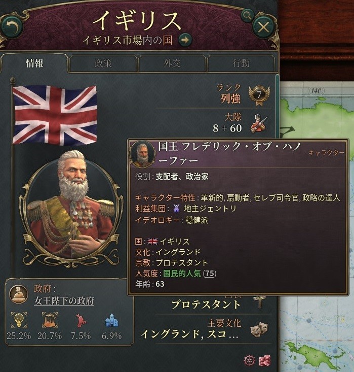 なお、国王派の方はすでにヴィクトリア女王から代替わりしていたようで、それが原因のクーデターかもしれない。
