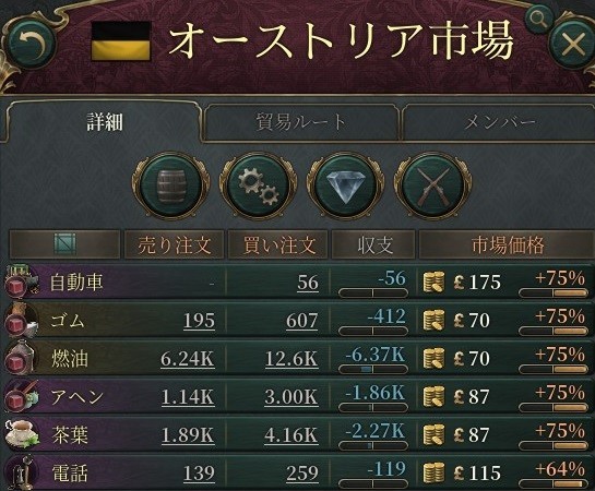オーストリアとフランスの市場では想定通りゴムやアヘンの不足が発生。多少なりとも、状況を有利にはしてくれるだろう。