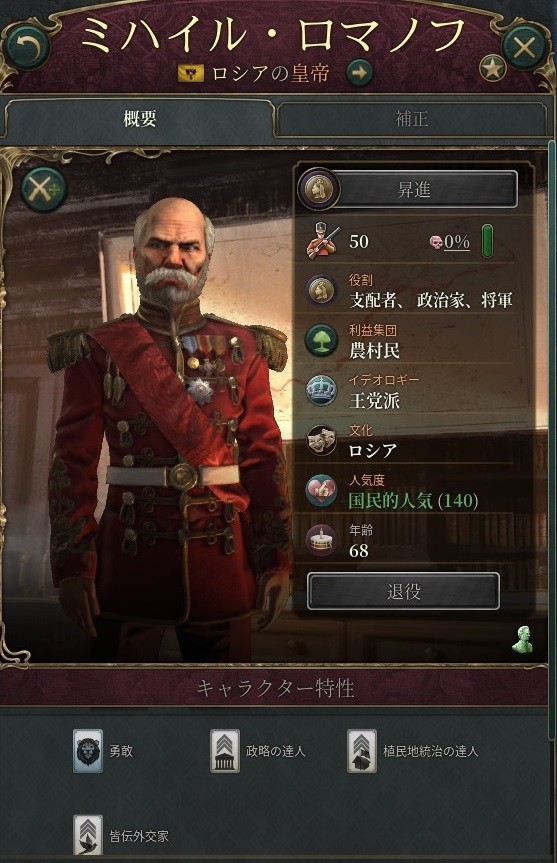 国王ミハイル4世は先の大戦において自ら陣頭指揮を執ったうえで勝利を手に入れたことで国民人気は自身以上に絶大なものとなり、またその政策もザヴォイコ提督からクタイソフ元帥に受け継がれた方針を堅持することは間違いなさそうだ。
