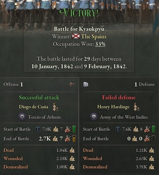 そしてこの隙に、逆にサント・ドミンゴ副王領を中心としたスペイン植民地軍が一斉にイギリス本国への上陸作戦を展開。1842年10月についにロンドン上陸・包囲を実現させた。